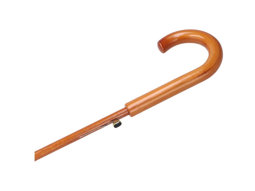 Dřevěná hůl, rukojeť, špička a koncovky drátů dávají tomuto deštníku nestárnoucí eleganci.
