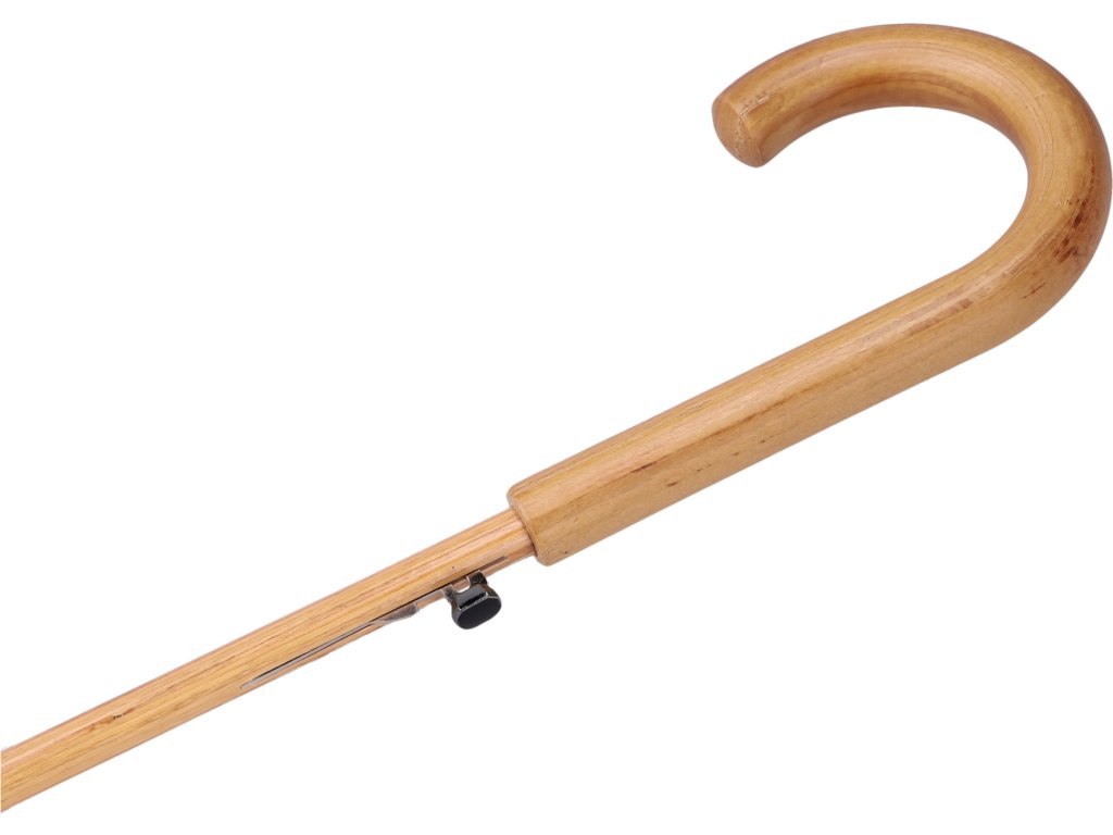 Dřevěná hůl, rukojeť a špička dávají tomuto deštníku nestárnoucí eleganci.