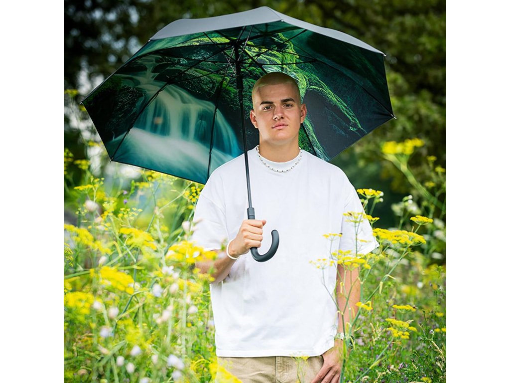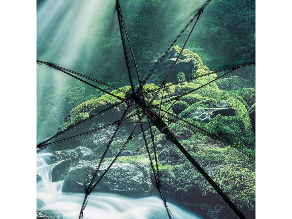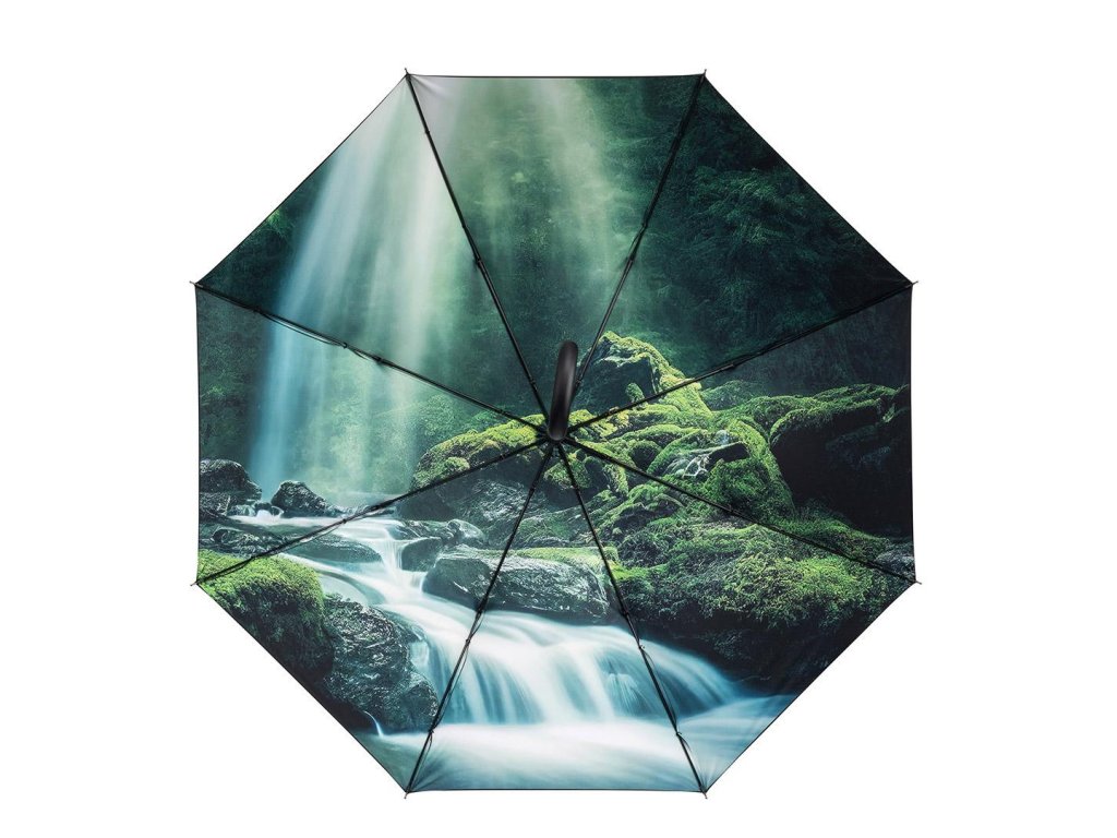 Unikátní holový deštník značky FARE s vnitřním fototiskem, který má všechno - les, skalku, mech, vodopád, paprsky slunce = dokonalý relax a chvilka snění.
