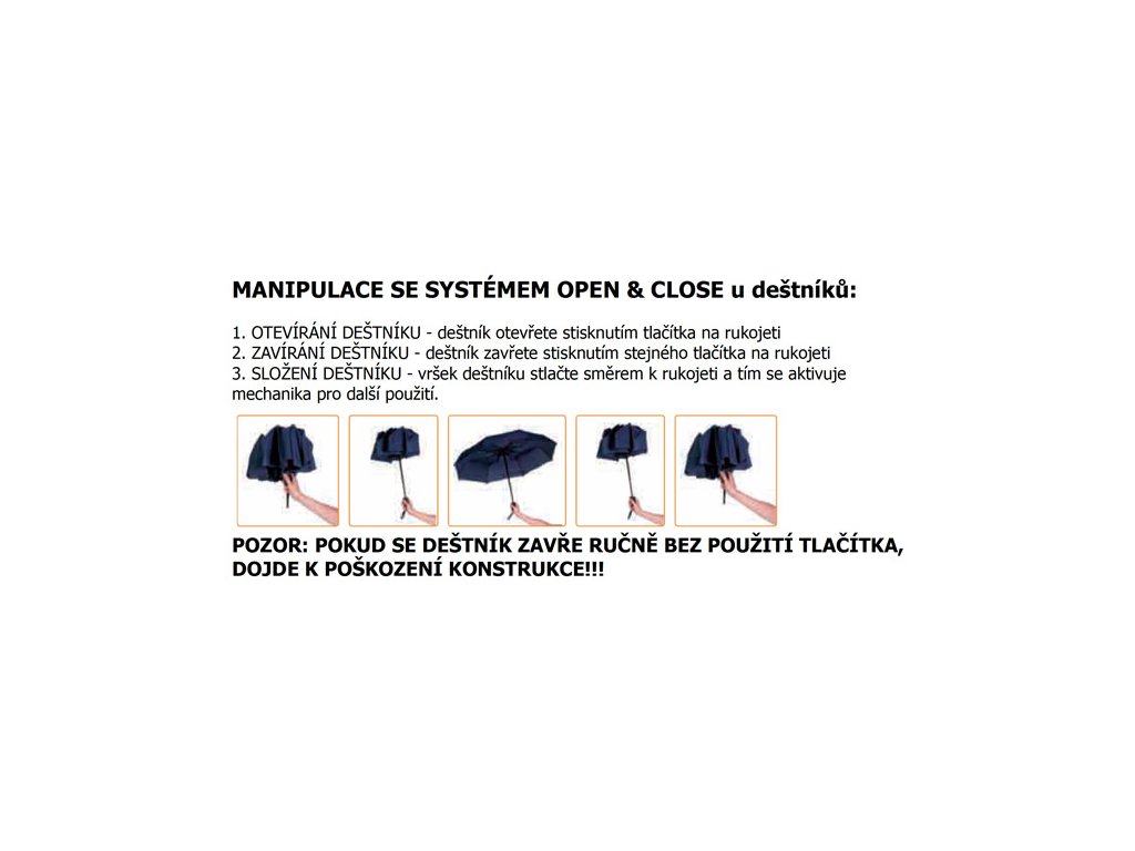 - deštník slouží výhradně jako ochrana před deštěm