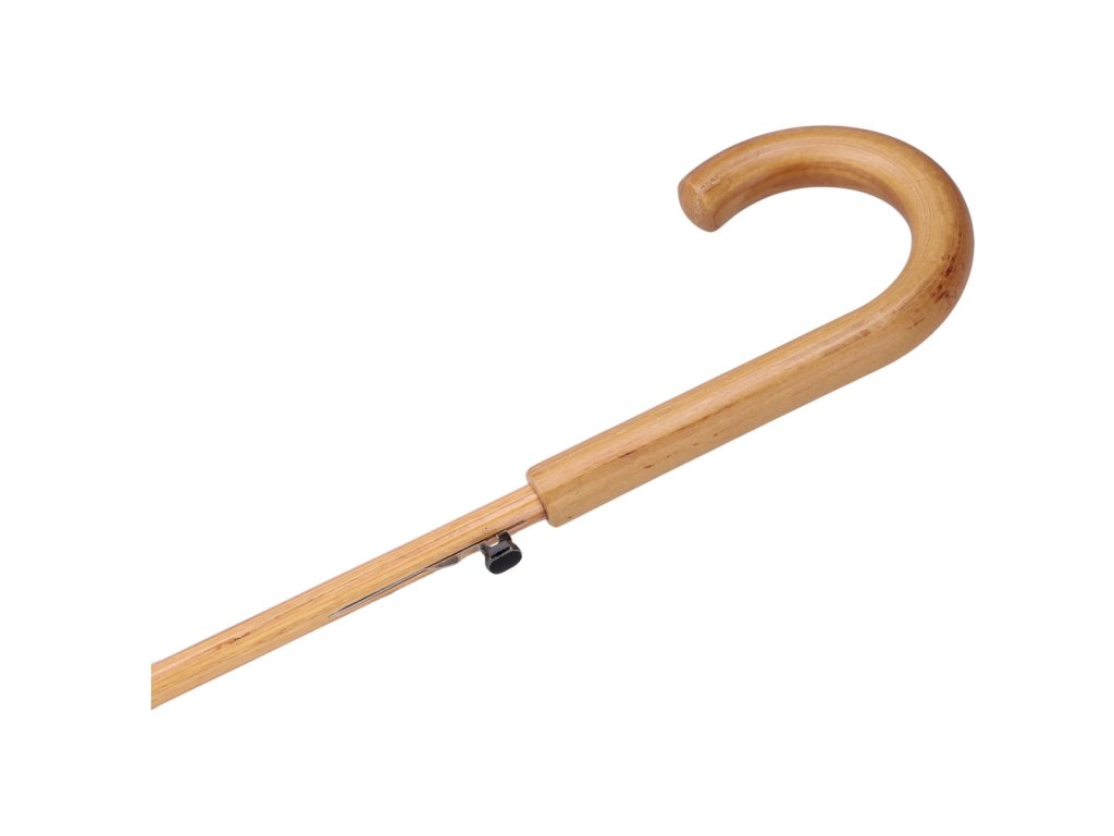 Dřevěná hůl, rukojeť a špička dávají tomuto deštníku nestárnoucí eleganci.
