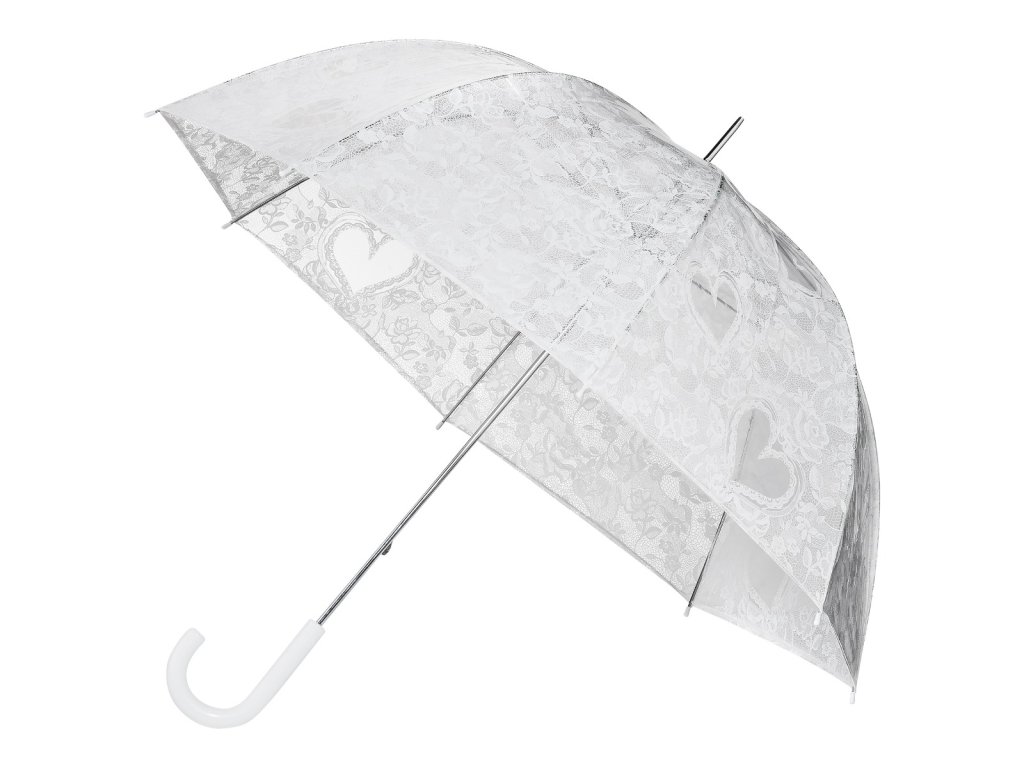 Dámský průhledný klenutý deštník s romantickým potiskem krajky.