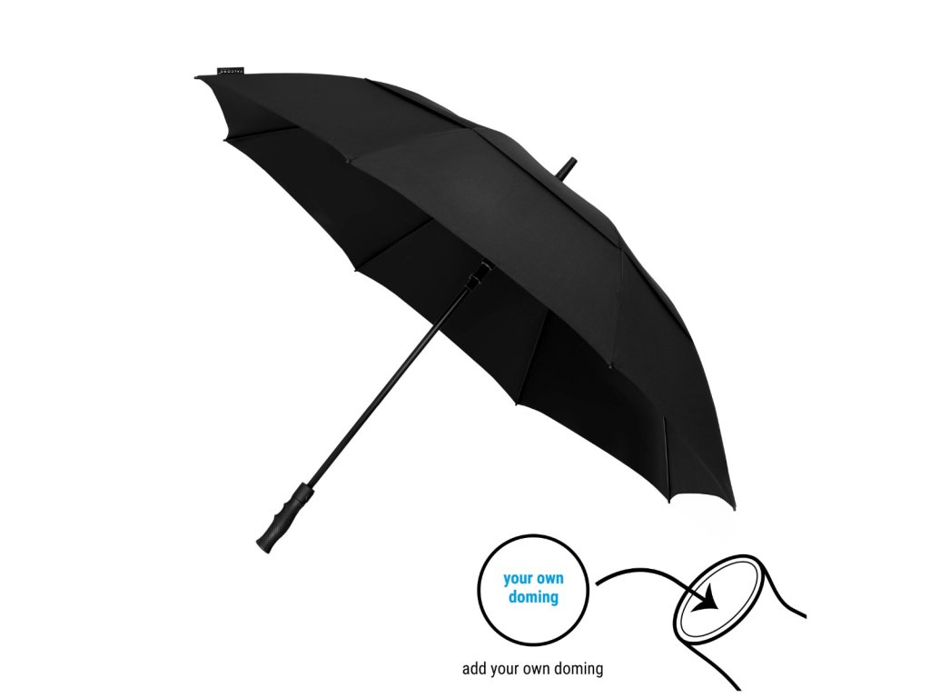 Deštník má jako jeden z mála z golfových deštníků látkové pouzdro a ventilační otvor pro odvod náporu větru.